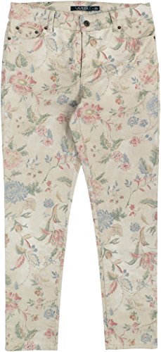 -. Binding : Apparel -. Brand : -. Color : Light Tan Multi -. Department : womens -. Feature : Standard-rise belted waist; Zip fly; Skinny fit / Five-pocket styling with signature metal rivets / Signature "Lauren "-debossed leather patch at the back right waist / 28 inch inseam; 10 inch front rise (size 8) -. ProductGroup : Apparel -. ProductTypeName : PANTS -. Title : Lauren Women's Floral-P.R.Int Stretch Skinny Ankle Jeans