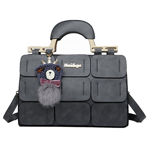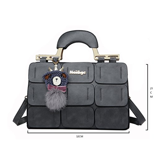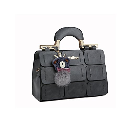 Pahajim The new Boston bag for women PU leather women top handbag shoulder bag (gray)