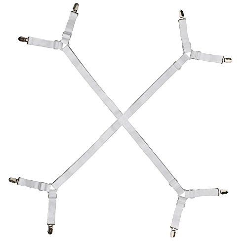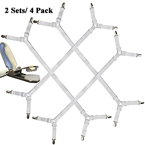 - Wider elastic provides stable and stronger grip for heavy duty purpose; Easy to put on and keeps corners in place, Life savers! Perfect Fitted Bed Sheet and mattress Cover Fastening System; fitted sheet holder,bed sheet holder straps,bed sheet corner clips grippers straps,adjustable elastic sheet straps grippers,sheet fasteners;Sheet suspenders grippers