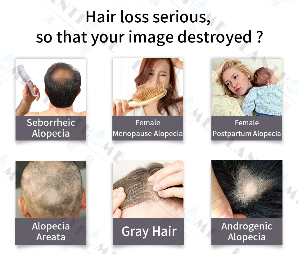 For seborrheic alopecia , androgenic alopecia , alopecia areata, physical alopecia , chemical alopecia , female postpartum alopecia, female menopause alopecia, head mites and head blood circulation , blocked hair follicles , hair roots malnutrition, with excessive hair loss caused by a variety of brain .