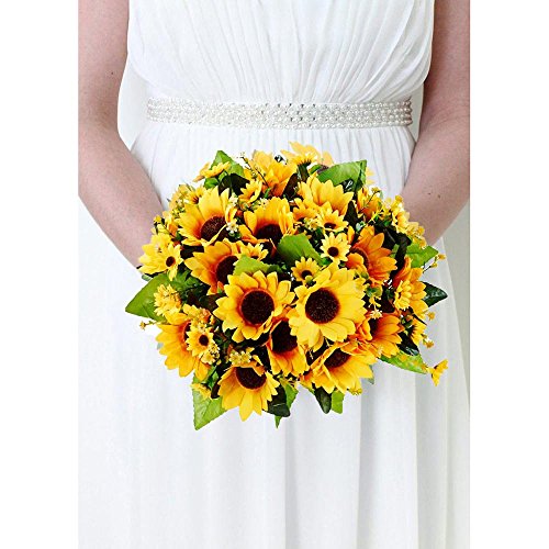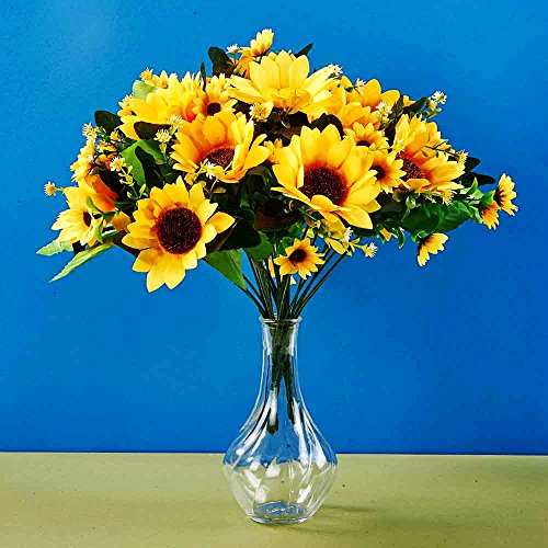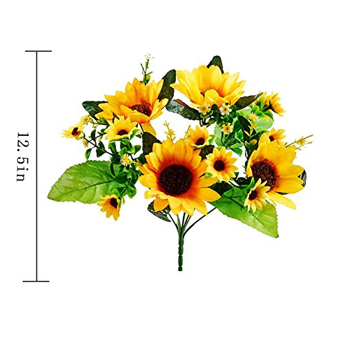 Sisjuly 4 Pack Bouquet Silk Sunflowers Artificial Silk Flowers Bouquet for Wedding Home Kitchen Bride