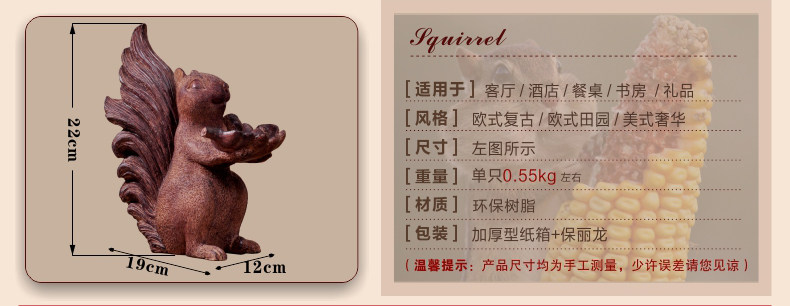 欧式家居装饰品客厅摆件 可爱松鼠玄关酒柜电视柜工艺品结婚礼物