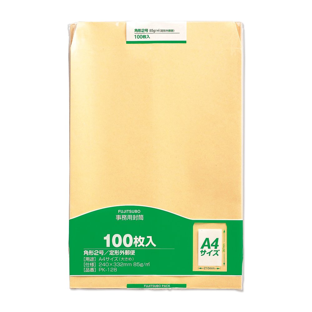 100 pieces of PK-128 Maruay Office kraft envelope square No. 2 (japan import)