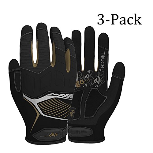 Vgo Glove High Dexterity Medium Duty Mechanic Glove(3-Pairs)(Anti-vibration,anti-abrasion,touchscreen,neoprene padding knuckle)