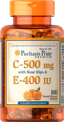 -. Binding : Health and Beauty -. Brand : Puritan's Pride -. EAN : 0074312112614 -. Feature : We are the manufacturer and the only authorized seller of this product. / This product has been made with the highest quality ingredients available. / Over 40 years in business and 19 million customers served. / Satisfaction guaranteed or your money back. -. IsAdultProduct : 0 -. Label : Puritan's Pride -. Manufacturer : Puritan's Pride -. MPN : 1261 -. PackageQuantity : 1 -. PartNumber : 1261 -. ProductGroup : Health and Beauty -. ProductTypeName : HEALTH_PERSONAL_CARE -. Publisher : Puritan's Pride -. Studio : Puritan's Pride -. Title : Puritan's Pride Vitamin C & E 500 mg/400 IU with Rose Hips-100 Softgels -. UPC : 074312112614