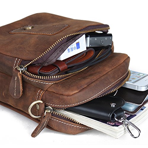 -. Brand : Tiding -. Department : mens -. Feature : Made of cowhide leather / Retro style / Metal zipper / Protect your valuable device from shocks, scratches, dirts and bumps. / Durable metal zipper design -. ProductGroup : Apparel -. ProductTypeName : LAGE -. Title : Tiding Crazy Horse Leather Vintage Waist Small Shoulder Bag Purse