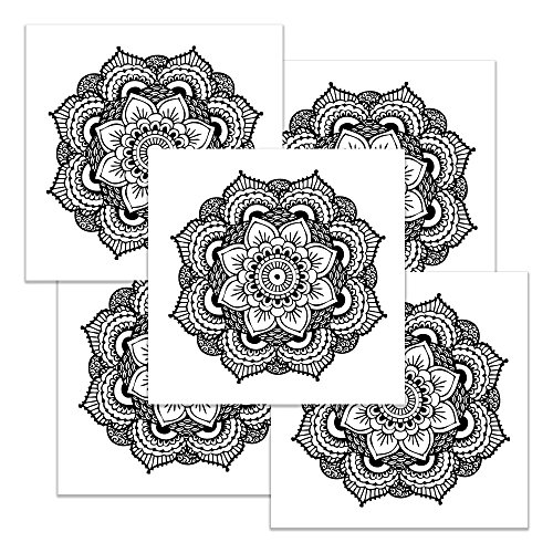 Yoga Mandala Temporary Tattoo Set - 5 Realistic Temporary Tattoos - Black Inspired Accessory - Yoga Gift - Size 2.5" x 2.5"