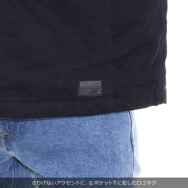 右腕の刺繍STONEロゴや、左ポケット下に配されたロゴタグなどVOLCOMらしいさりげないデザイン性も楽しめるアイテムです。
