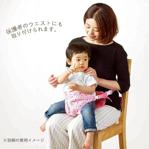 | 保護者のウエストにも取り付けられるチェアベルトです。着脱・調整が簡単なバックル仕様!!撥水加工が施されているので、汚れたら洗濯機で洗濯OK!! |