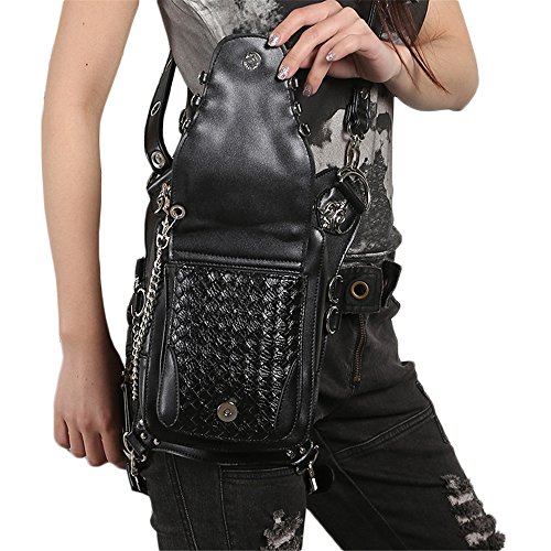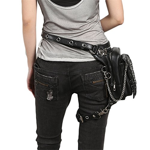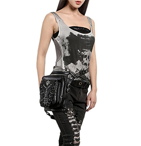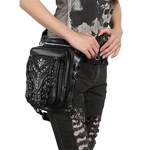 Color:Black Material:PU Leather Style:Punk/Rock/Gothic Item Type:Waist Packs ,Crossbody Bags,Shoulder Bags Function:Multifunctional Bag Size: Wide:28cm Long:29cm Height:9.5cm Packet can be placed space is around 20 length around 16 width. Belt length is in 113-146cm, another belt in the 33-69cm. The belt is adjustable Steampunk Underground Pack - Thigh Holster, Shoulder Holster, Handbag, Purse, Messenger Bag, Fanny PackFeature