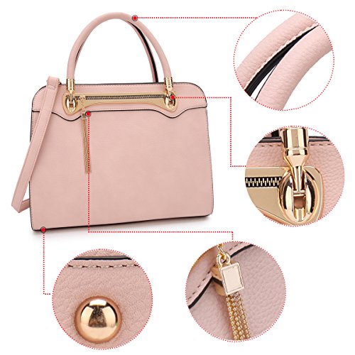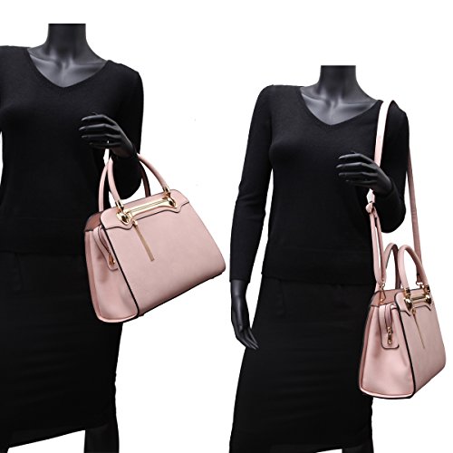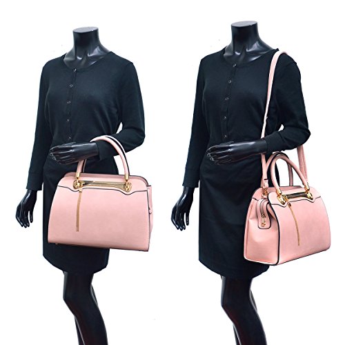 -. Feature : ✈ MEDIUM SIZE SATCHEL BAG: 14"W x 10"H x 6.5"D(Inches) Handle Drop Length: 6.6''. With removable and adjustable shoulder strap, end to end length:42" Inches. This bag is a great size for a small tablet, ipad, wallet, make up, keys, phone etc. It could be used as a women's handbags, satchel handbags, tote bags, shoulder purses, work bags, medium sized briefcases etc. / ✈ FASHION DESIGN: Structured Soft PU leather construction with four metallic bottom studs(feet). Top zipper closure design keep your stuffs safe and secret. Soft round leather handles matched with removable and adjustable shoulder strap give you 3 ways to carrying-- tote, over the shoulder, crossbody. This designer handbag is accented with gold tone hardware and hinges. (No plastic feeling.) Also, the front decorative tassel fringed zipper (Unusable) make it more attractive and adorable. / ✈ HIGH QUALITY MATERIAL: Signature Dasein quality faux leather with glistening gold-tone hardware(100% no chemical smells) and four bottom studs, solid color structured bag. The stitching is well done and durable for long time using. / ✈ ORGANIZED POCKETS: Full-lined fabric interior. Two interior front wall open top item pockets for small stuffs + One interior back wall zipper pocket. / ✈ ✈ EXCELLENT PACKAGE AND SHIPPING: One dust bag (which can be used as a shopping bag) and one dasein box or Amazon box. Seriously protect the leather from damage. Great gift idea for your friends, wife, parents or yourself. ✔ 100% NO RISK Money Back Guarantee;✔Ship from Los Angeles or Amazon Warehouse;✔FREE Standard Shipping In Contiguous United States;✔Find storefront of Dasein, more surP.R.Ises are waiting for you!