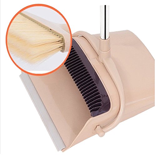 Product Description Ergonomic design,stands upright for comfortable sweeping Dustpan is pivoted with a lock so you don't need to bend at all while picking dirt and you can carry to the dustbin. Lengthened comb teeth.Pet hair can be easily removed.The Brush bristles are good quality picking up any pet hair and dust on the floor while sweeping. Dust pan and broom set Useful for office,house,kitchen,outdoors and indoors sweeping 0