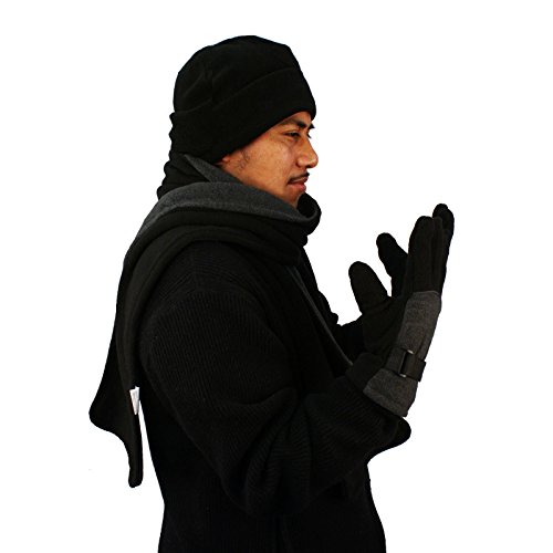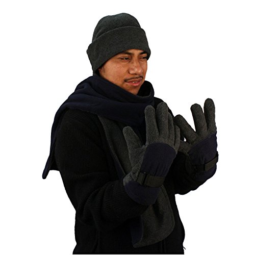 Men's 3 in 1 Winter Fleece Ski Super Soft Scarf Scarves, Beanie Skull hat Cap Full Gloves Set. New Classic 2 tone fleece set. Great warmth in cold weather. Great for outdoor activities. Everyone needs a scarf, a must have, 2 tone, 2 color options. Better yet matching gloves, full gloves with adjustable velcro strap clip hat, 6 panel full cap!!! Great gift for anyone. No nonsense scarf, new and improved ultra soft, rich look fleece set. So much more accessories for all in our store. 0 |