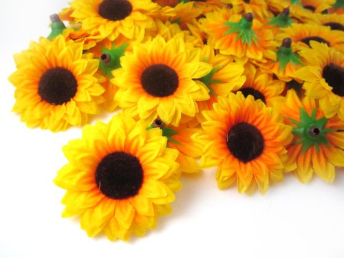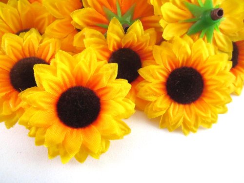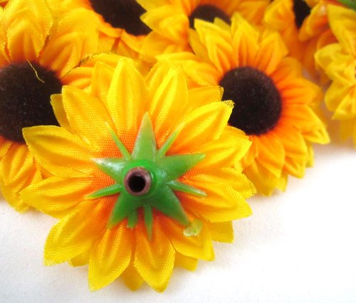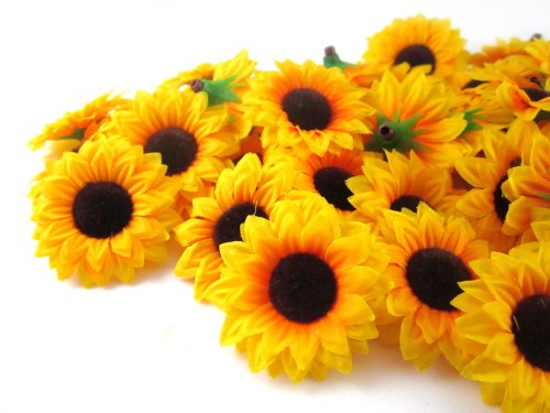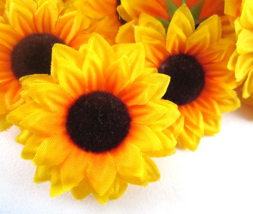 (24) Silk Yellow Sunflowers sun Flower Heads , Gerber Daisies - 1.5" - Artificial Flowers Heads Fabric Floral Supplies Wholesale Lot for Wedding Flowers Accessories Make Bridal Hair Clips Headbands Dress