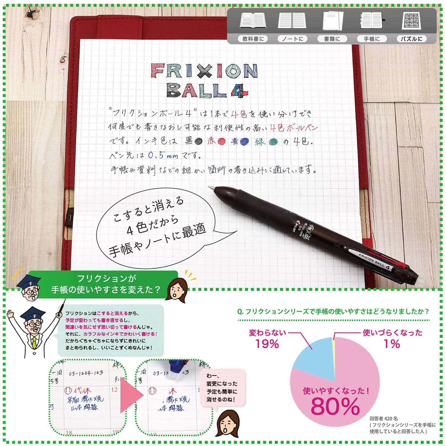 Pilot Frixion Ball4 Ballpoint Pen Brown Body (LKFB-80EF-BN)