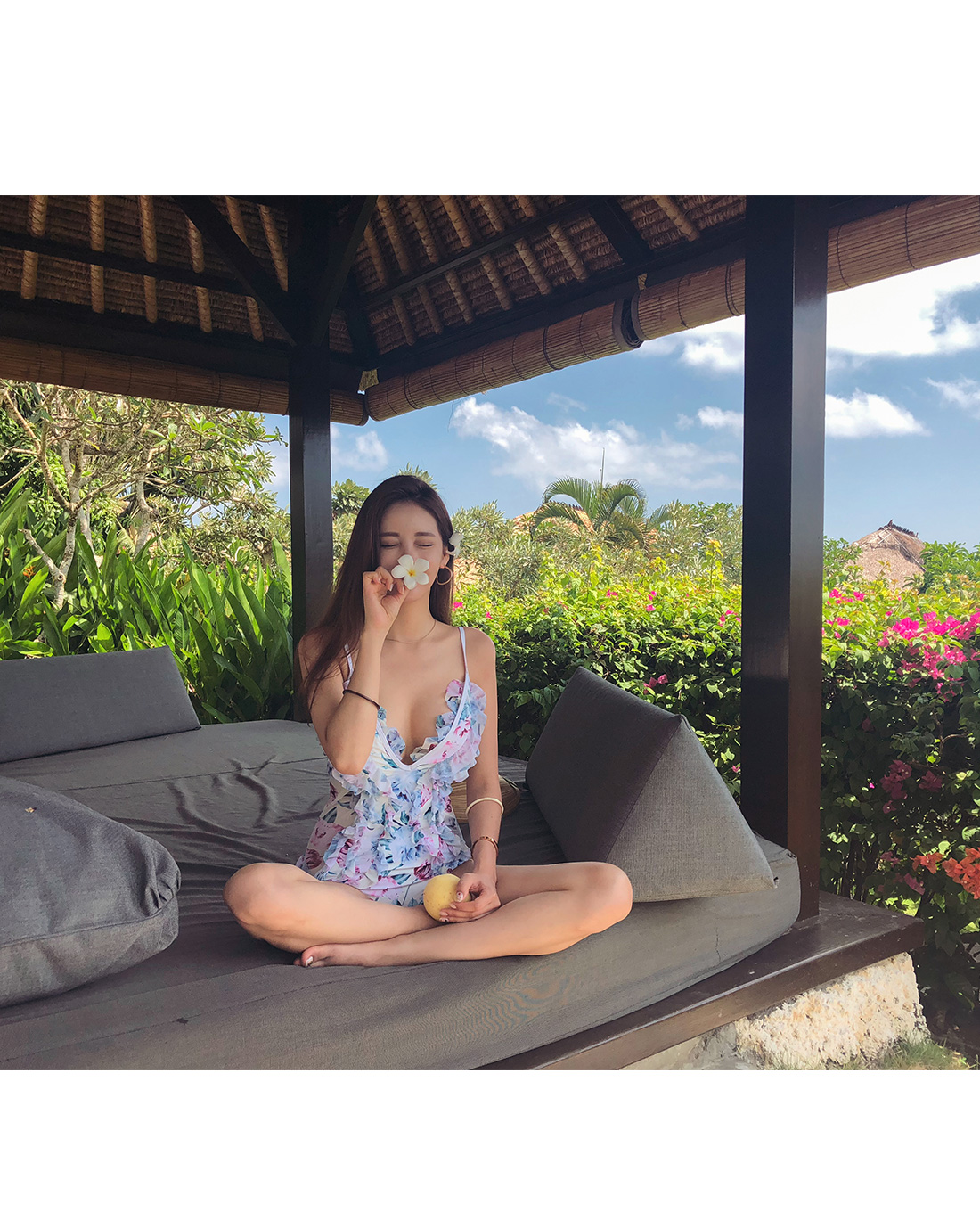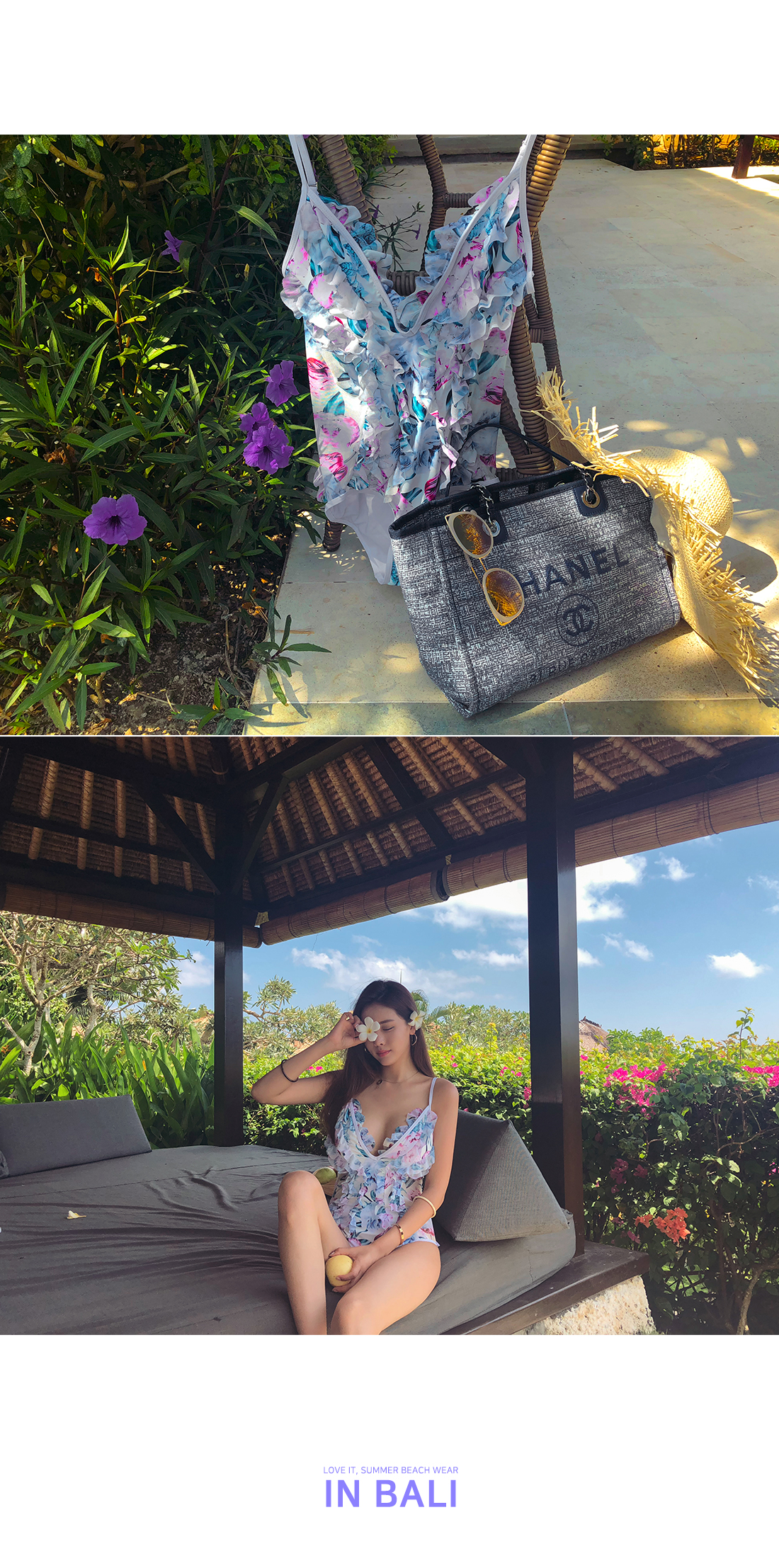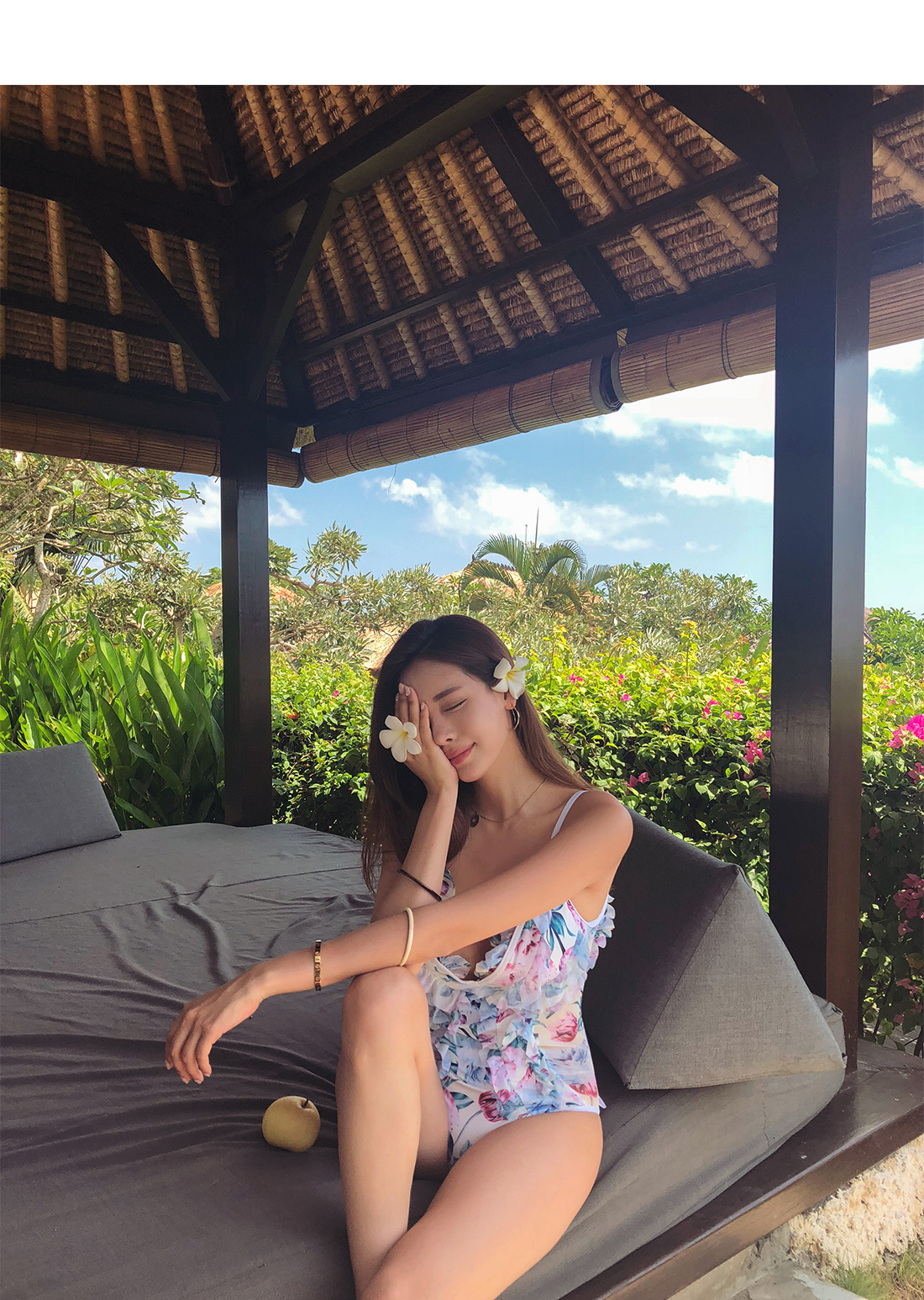 여성스러운 플라워 프릴 모노키니를 소개합니다.