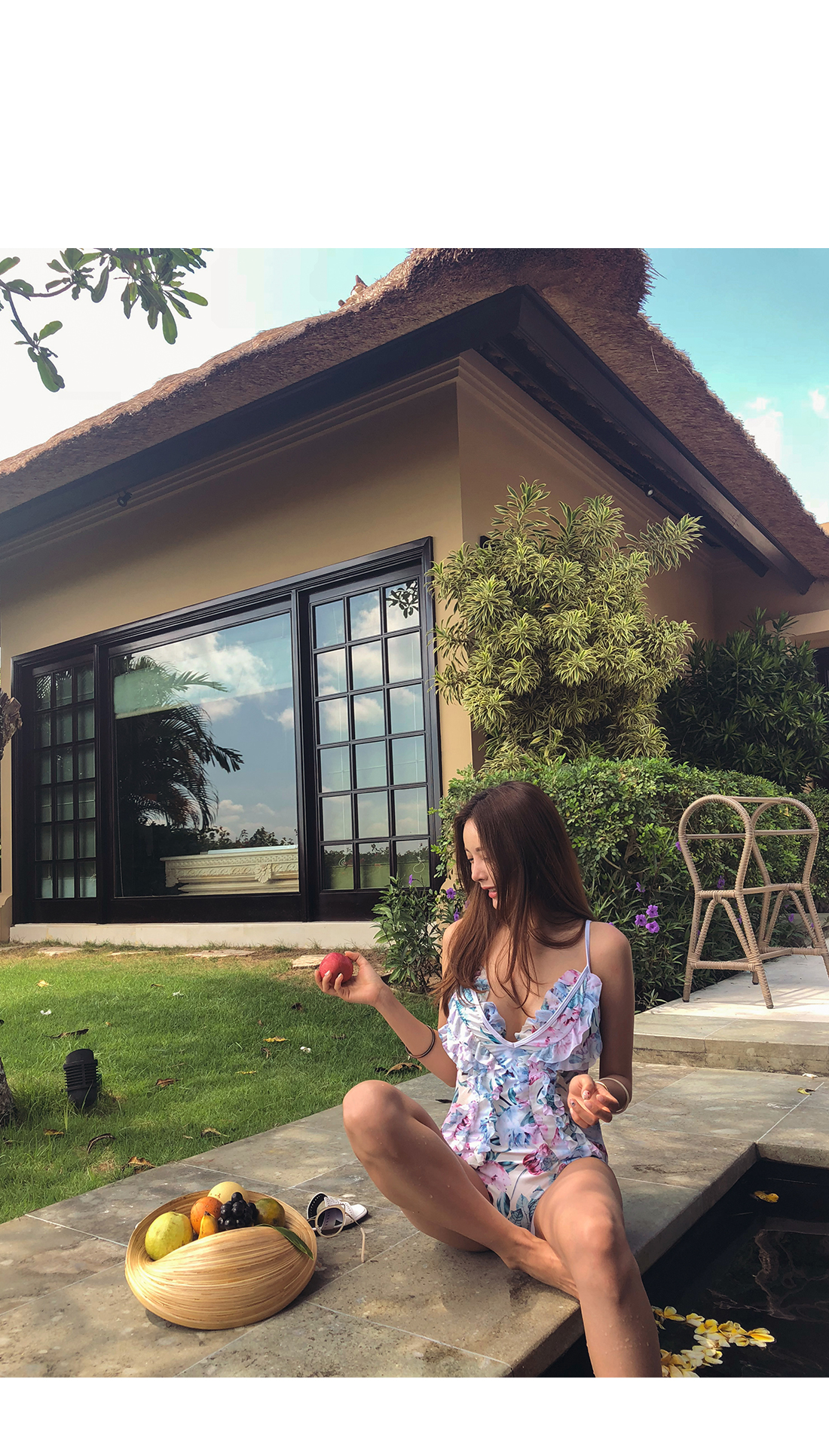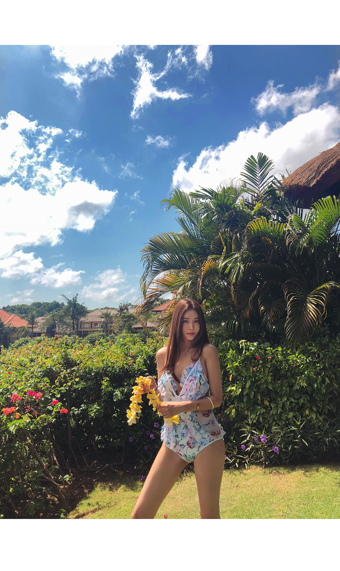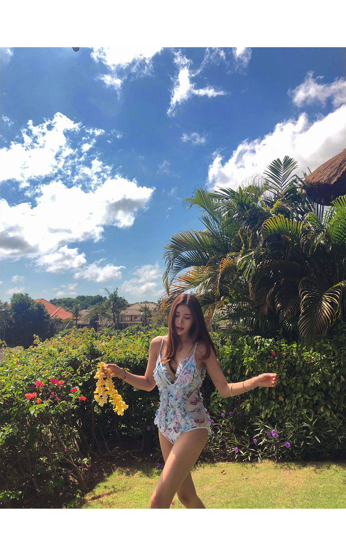 여성스러운 플라워 프릴 모노키니를 소개합니다.