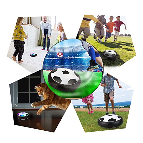 ★ It is a perfect toy for your kids to play outdoor or indoor game. You can turn any floor into an air soccer surface. Rotary motor at the bottom of soccer can provide wind to go into intake, making the ball floating on the floor.