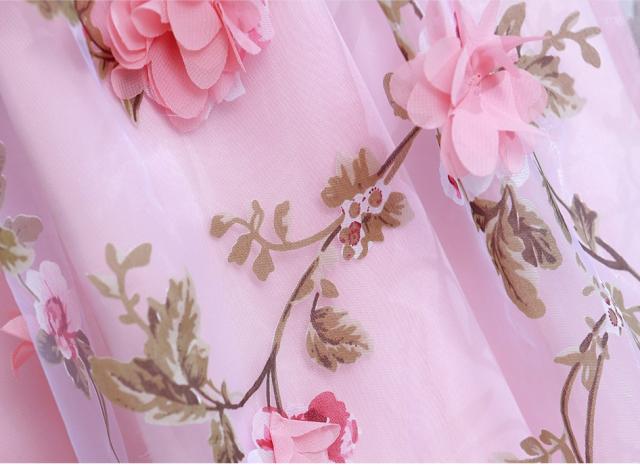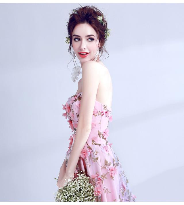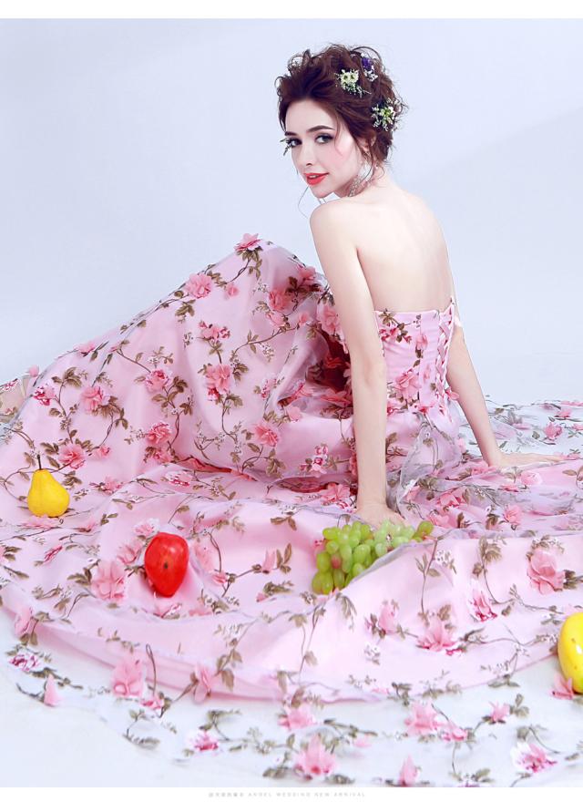 ウエディングドレス 花柄 ノースリーブ ロングドレス パーティードレス レース 刺繍 ピンク