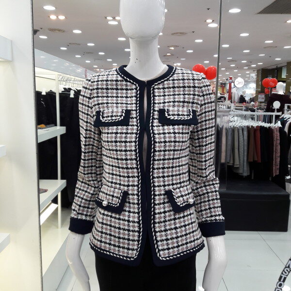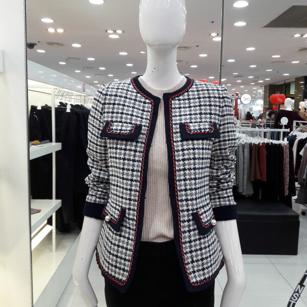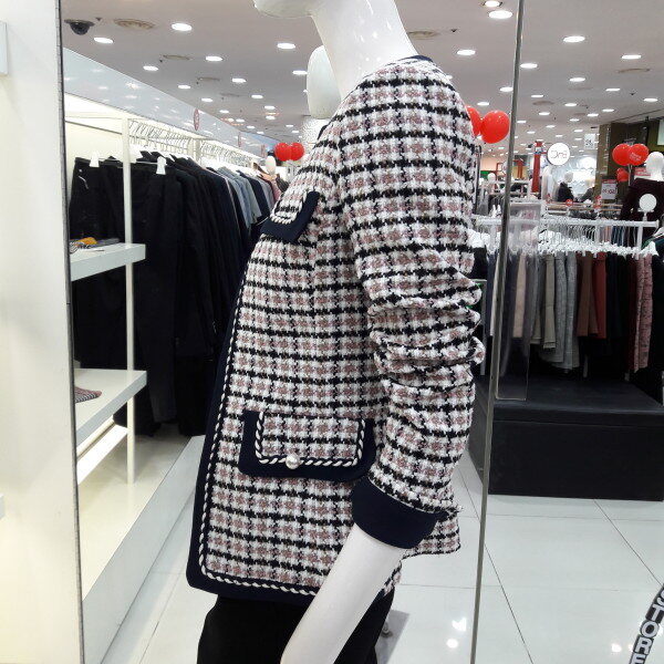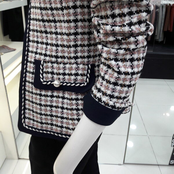 18년 간절기 트위드 체크 자켓입니다 트렌디한 체크패턴과 트위드 소재가 고급스럽고 세련되 보이며 포켓장식과 진주포인트가 여성스러운 스타일입니다 캐쥬얼 정장 어느 분위기에도스타일리쉬하게 연출 할수 있는 아이템입니다