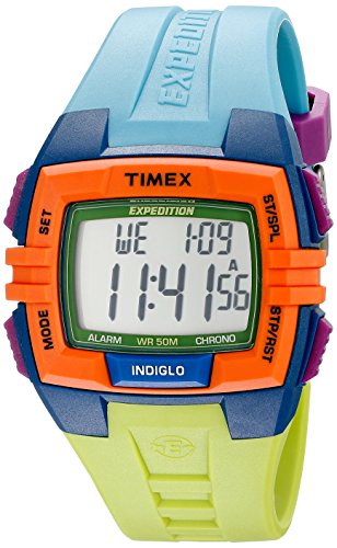 100-hour chronograph with lap and split times. 24-hour countdown timer with stop and repeat. Three daily, weekday or weekend alarms with 5-minute backup. Two time zone settings. Water resistance to 50m. INDIGLO night-light with NIGHT-MODE feature.Feature