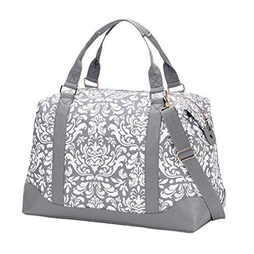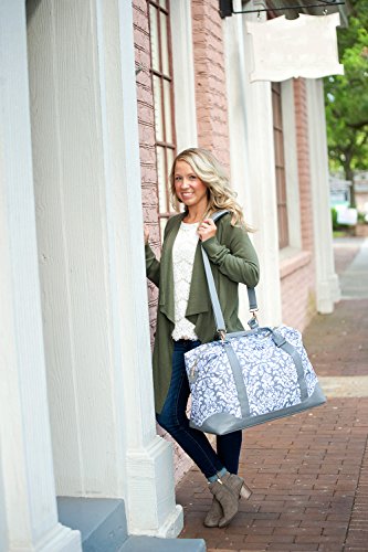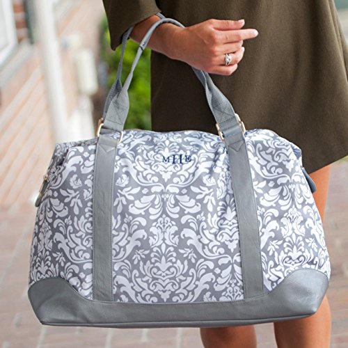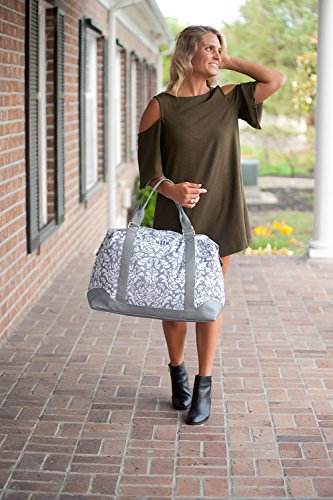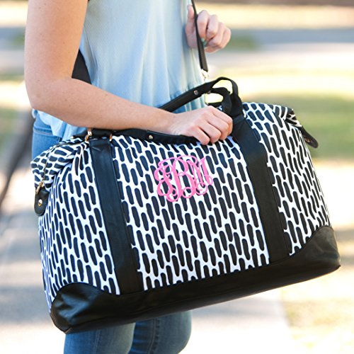 Product Description Travel in style with our super adorable weekender bag! Pack all of your necessities for your vacation in this totally bag with trendy accents. This bag features an adjustable/removable shoulder strap, two easy to carry handles, a reinforced bottom, inside zipper pocket, and leather trim! This monogrammed bag will have everyone talking, so you better be ready for lots of compliments! Measures: 20" L x 10.5" W x 16.5" H. 0