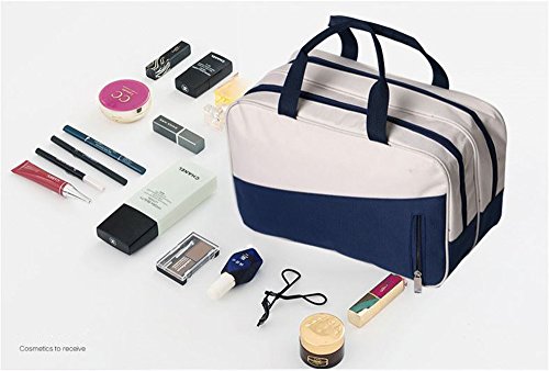 XICHEN Versatile Beach swim Cosmetic Bag - Wet and dry zone (Navy blue+beige)