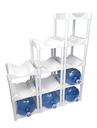 Protect your floors with Bottle Buddy. This all-plastic bottle storage unit is made in the USA and allows you to easily store 3 water bottles containing 5 gallons each. The kit includes 3 trays, 8 legs, 4 top caps, floor protection kit and instructions for easy set up. Product dimensions when assembled: 21.5 x 14.5 x 28.8 inches. Water bottles not included. Made in the USA.Feature