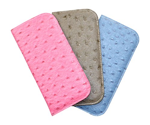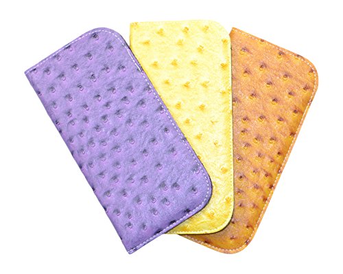 These high quality soft fabric slip-in eyeglass cases feature a variety of faux leathers to suit your style. Choose from two realistic and luxurious faux leather choices: a stunning faux Ostrich leather, or a pebbled faux leather with bold two-tone color contrasting. Choose from a single case or get a 2 or 3 pack- enough to keep one at home, one at the office, and one in your bag or purse! The interior features a padded plush nylon lining to protect your lenses from scratches and damage. Hand packed with care in Dallas, Texas.