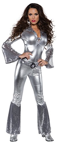 -. Title : Underwraps Costumes Women's Silver Metallic Jumpsuit Costume - Foxy