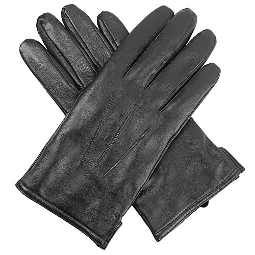 Crafted of luxe sheepskin leather fully lined with 100% pure Cashmere, our classic men's leather gloves offer superior quality at a very sensible price. Why pay a fortune for fine leather gloves? Your Candor and Class men's dress gloves give you the same high-end craftsmanship you'd get with those pricey brands... at much more reasonable cost. These Professional Men's Gloves Feature: * 100% genuine sheepskin leather, famous for buttery softness, rich texture fine, smooth grain * Full lining, right down to the fingertips: premium Cashmere, extra soft hand feel and warmth * Superior pique' stitching (8-9 stitches per inch)... for stronger, tighter seams elegant, tasteful style * Reinforced triple topstitching for that traditional dress-glove look * Convenient side vents for easier on-and-off