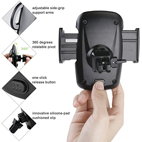 [Easy Operation] Quick automatic release & easy installation. You can just press the release button with one hand. Then your phone can release from the car phone holder immediately. Squeeze the arms on both side to clamp mobile phone again. Installation is also simple and easy.