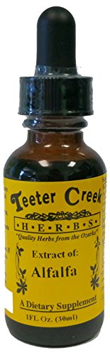 Studio : Teeter Creek Publisher : Teeter Creek Binding : Health and Beauty Product Description Teeter Creek Alfalfa Extract 1 fl oz. Teeter Creek Herbs uses the best quality organic herbs, many grown right on our farm in the Ozark Mountains, to produce potent herbal extracts at a reasonable price. 0