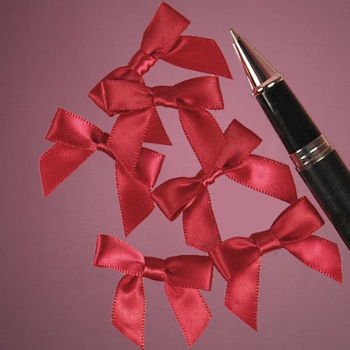 [Product Information]- These adorable Mini RED Satin Bows feature 2 ribbon tails and a nicely finished edge. They measure approximately 1-3/8" in length and 1" in width. These versatile bows do not come wired and must be glued onto your items. invitations, etc. Sold in a pack of 50 RED bows.