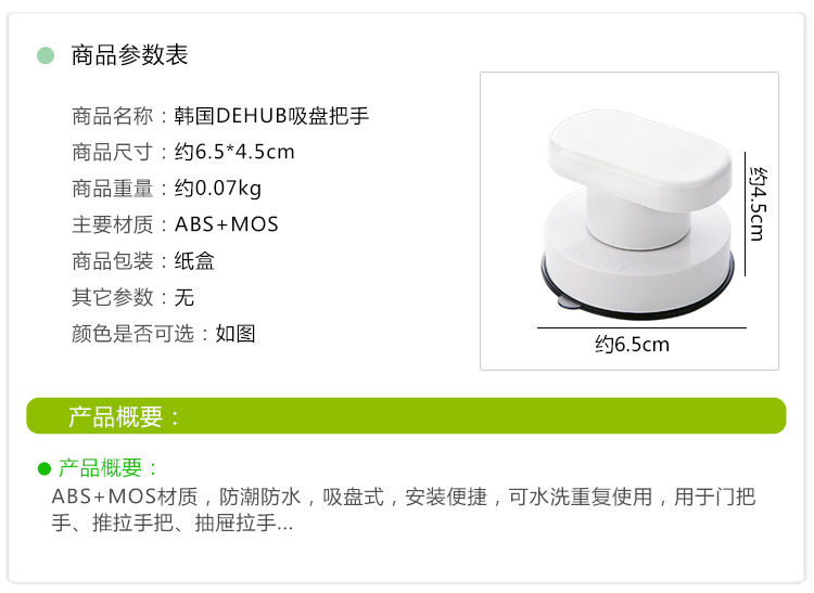 韩国dehub吸盘门把手 圆形推拉玻璃门拉手抽屉把手 浴室门窗拉手