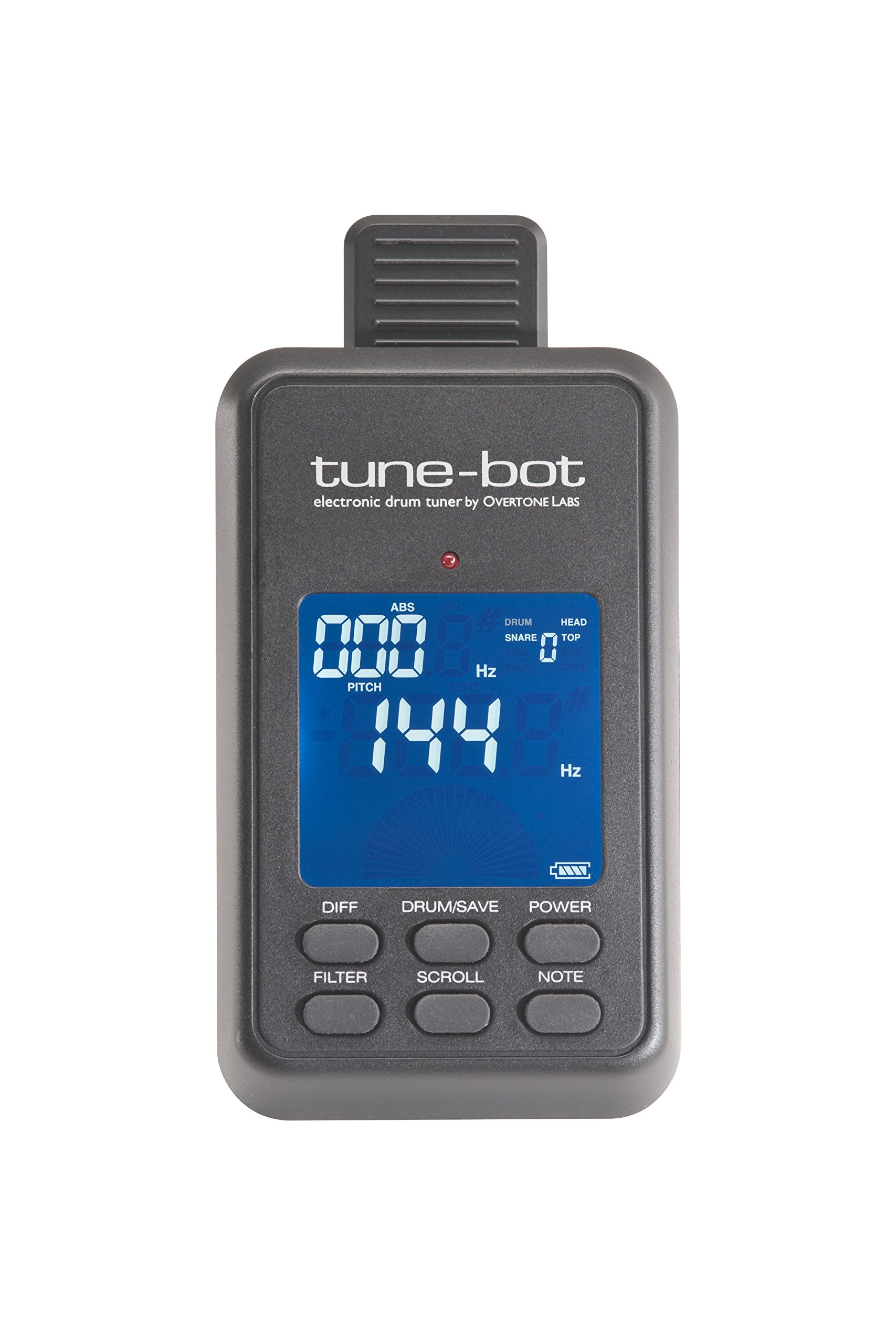 The tune-bot can check the tuning of drums, percussion, such as snare drums, drums, drums, timpani, by frequency and pitch,