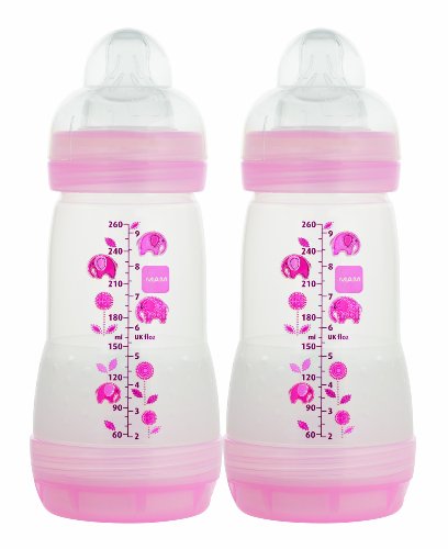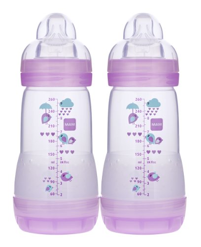 [Description] The SkinSoft textured nipple feels natural to babies making the switch between breast and bottle easy; nipple``s flat shape fits perfectly in the baby``s mouth Includes two 9oz Anti-Colic Bottle with two Medium Flow Nipple Patented vented base regulates pressure ensuring babies do not get air in their tummy while feeding Wide openings make it easy to clean_ fill and assemble Self-sterilizes in 3 minutes in the microwave in 3 easy steps