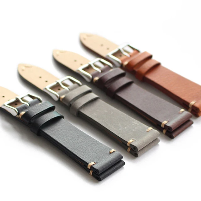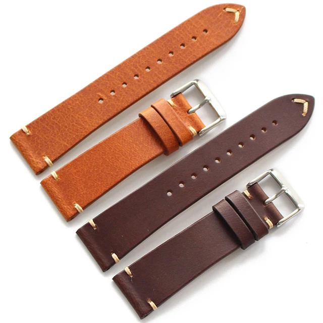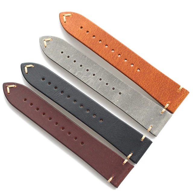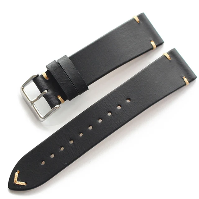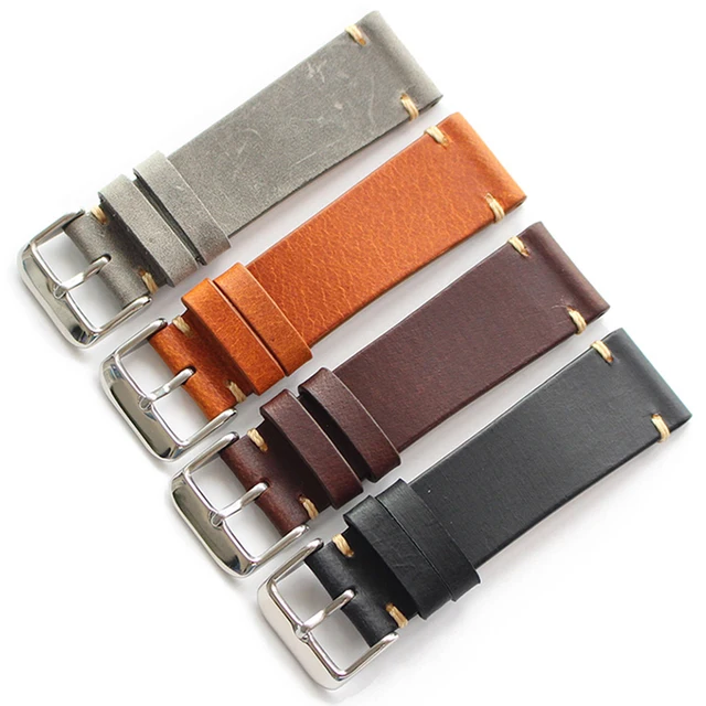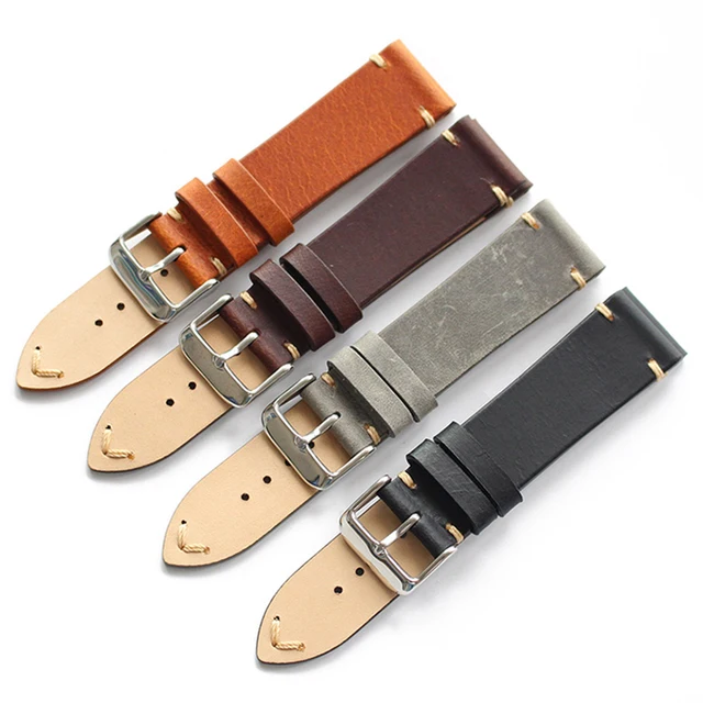 | [해외] 고급 수제 레트로 정품 가죽 시계 밴드 스트랩 시계 20 미리메터 범용 스트랩 실버 스테인레스 스틸 버클 |