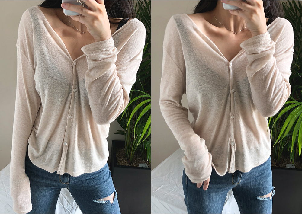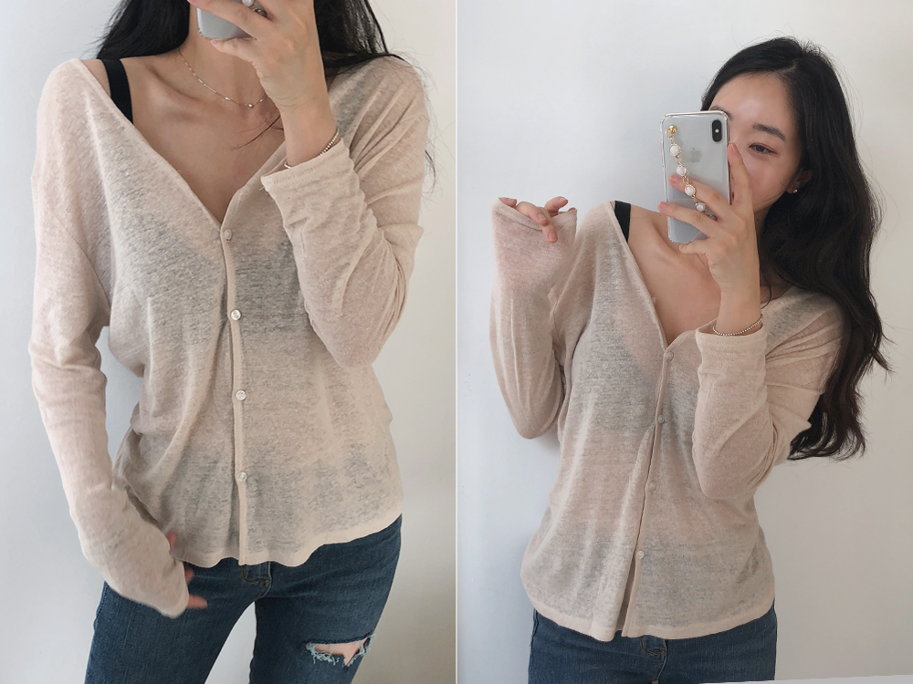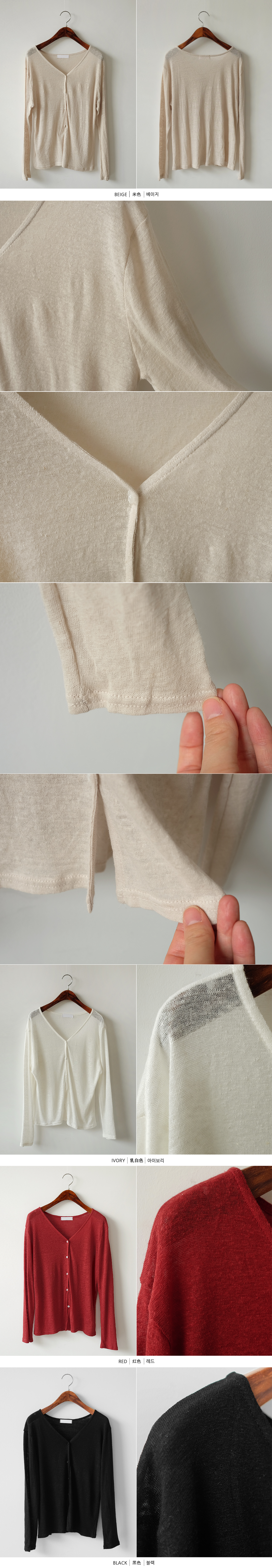 린넨 긴팔 브이넥 단추 가디건
