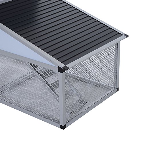 Studio : MTN Gearsmith Publisher : MTN Gearsmith Product Description Our premium pet house suitable for 2-4 chickens will give your feathered friends a cozy and safe living environment. The vast hutch is constructed from robust metal for superior durability and stability. It provides a comfortable resting place and a large enough run area where your kitchens can move around and exercise freely. Multiple doors and tray which can be pulled out make it easier to access to the cage for collecting eggs or routine cleaning. There is no double about it, this multi-purpose chicken coop is the best choice. Features : ? Made of sturdy and solid metal protect your chicken from predators ? Wire mesh garantees maximum ventilation for animal ? Provides a safe and comfortable laying environment ? Includes a pull out tray for easy cleaning up ? With a spacious run area for activity ? Ramp for easy access to the cage Specifications: ? Color: Grey ? Material: Alluminum alloy ? Overall Size: 100.5"L × 45.7"W × 29.4"H ? Main House: 35.3"L × 29.4"W × 17.7"H ? Side Nesting Box Size: 30.3"L × 29.4"W × 28.4"H ? Front Door Size: 16.6"H × 16.5"W ? Tray Size: 32.7"L × 26.4"W ? Ramp Size: 26.4"L × 7.7"W ? Run Area Size: 35.4"L × 27.8"W × 17.9"H ? Egg Box Size: 14.0"L × 13.0"W × 17.3"H ? Egg Box Door Size: 11.8"L × 11.8" ? Net Weight: 176lbs 0