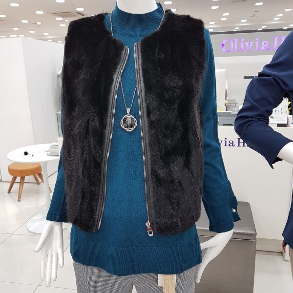 천연 밍크와 천연 양가죽 100% 의 허리선까지 오는 길이감의 귀여운 퍼 베스트입니다어떤 옷에서나 코디 할수있어 요