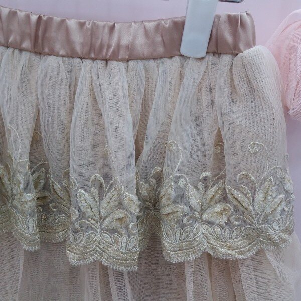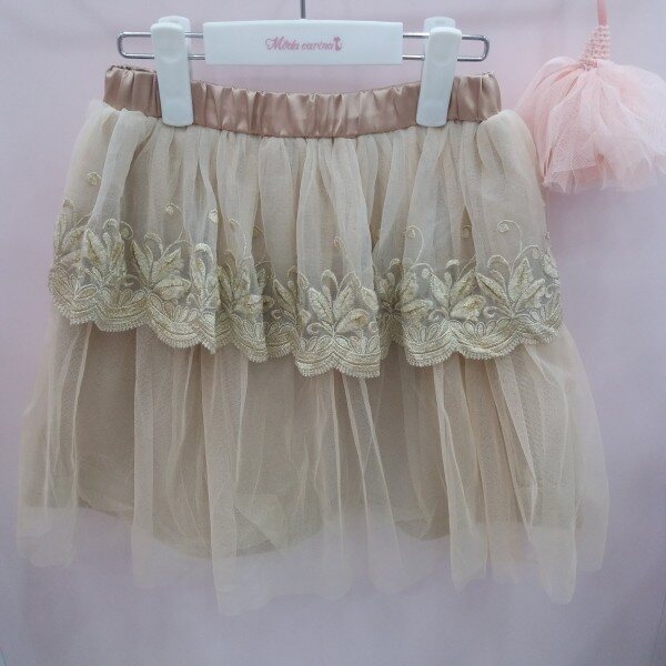 은은한 펄감과 멋스러운 골드자수 레이스가 럭셔리한 아이템입니다.2단 캉캉 스타일로 발랄한 디자인입니다~