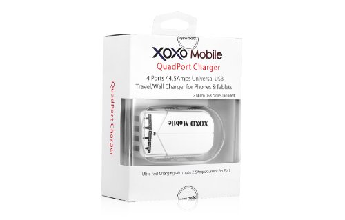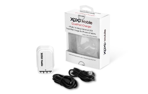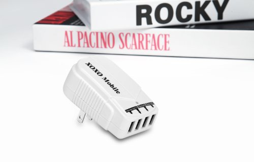 XOXO Mobile 4 USB Port Home/Wall/Travel Charger with 4.5A Ouput for Apple iPad, iPad2, iPad3, iPad4, iPad Mini, iPhone 5/4S/4, iPod Touch 5G, Nano 7th, Samsung Galaxy S3/S2/S Note I/II, Motolola Droid, HTC EVO Smart Phones, Amazon Kindle Fire. 4PWC-WT-A S