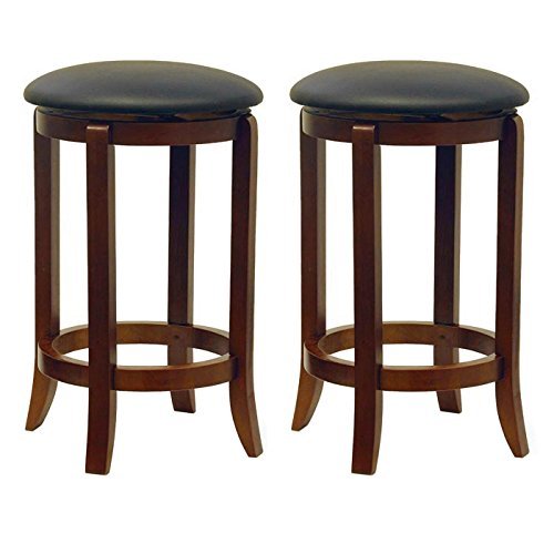 -. Feature : Set of 2 Faux Leather Swivel 24 Stool, Assembled # 94624 / Brown