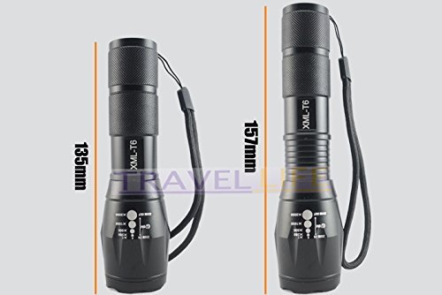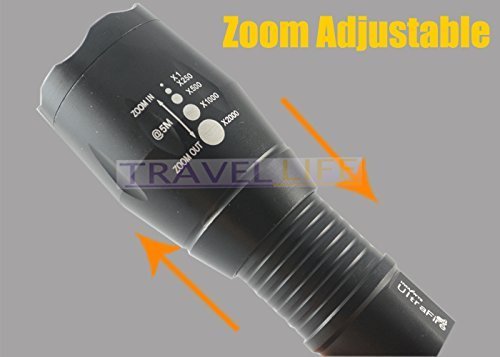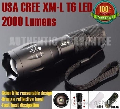 -. Feature : UltraFire E17 Touch Cree XM-L T6 2000 Lumen XML LED Light Zoomable led flashligh Waterproof Flashlight / Adjustable focus range for different usage, stretching to adjust its focus / 5 switch modes: high / medium / low / strobe / SOS / Skid-proof and water resistant design, best suitable for Outdoor Camping, Climbing, Cycling, etc / Power Source: 1 x 3.7V 18650 Battery or 3x AAA battery (Not Included)