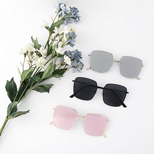 Mio Eyewear Square Fashion Sunglasses for Men and Women [Mirrored Lenses, Metal Frame] 100% UV400 Protection - 70