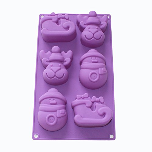 X-Haibei Christmas Holiday Snowman Reindeer Sleigh Soap Cake Chocolate Silicone Mold Pan