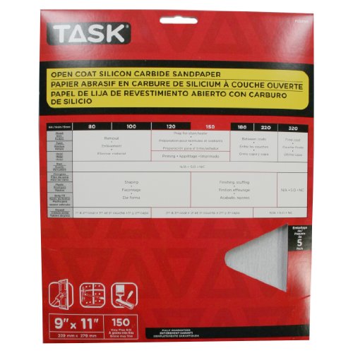 Task Tools PZ53150 9-Inch by 11-Inch Open Coat Drywall Sandpaper, 150 Grit, 5-Pack