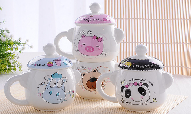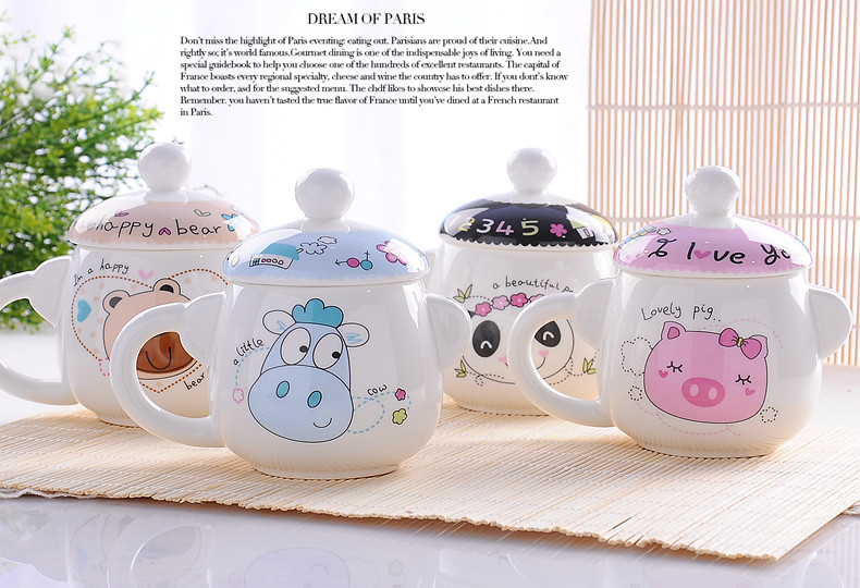创意马克杯陶瓷杯卡通水杯咖啡杯情侣杯子骨瓷杯奶杯带盖