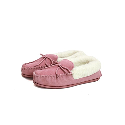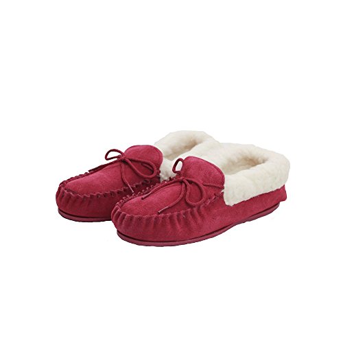 Product DescriptionLadies moccasins with suede upper, wool mix lining, wool collar and hard TPR sole.0